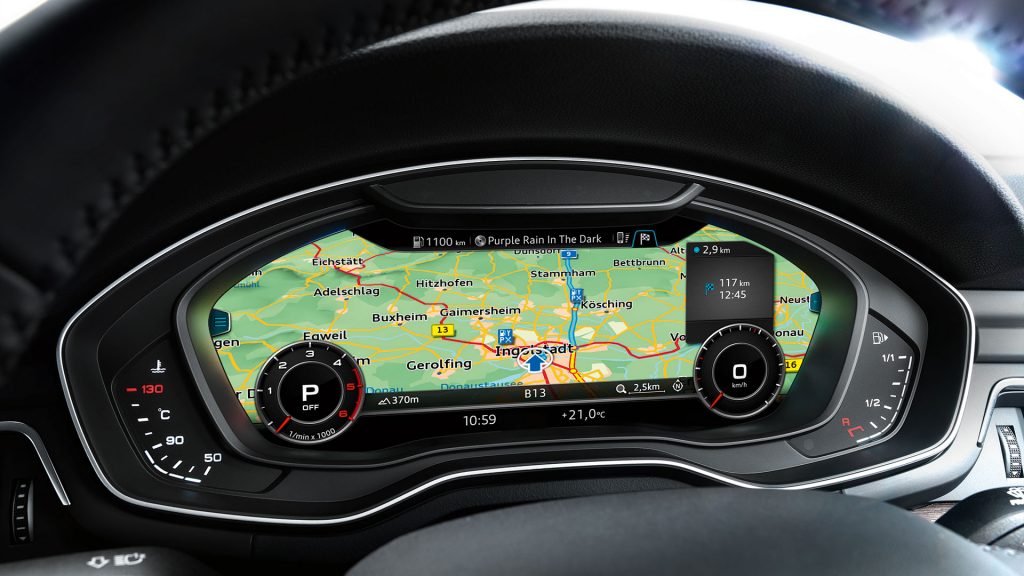 Audi virtual cockpit for the Audi A4 Sedan offers top-quality high-tech features. The instrument cluster in the form of a high-resolution 12.3‑inch LCD screen presents information in a comprehensive and versatile manner.