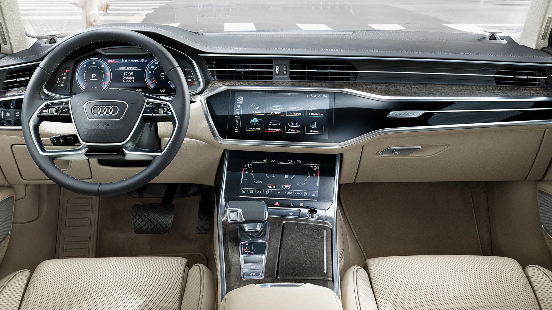 The high-resolution 10.1-inch and 8.6-inch MMI screens fit seamlessly into the elegant instrument panel and feature haptic touch response. With haptic touch, users hear and feel a click as confirmation once their finger triggers a function. On the top screen the driver controls all infotainment and navigation features, while on the lower screen the range of assistance systems and comfort functions can be controlled.