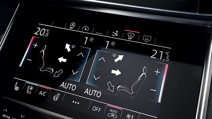 The four-zone comfort air conditioning system offers individual climate control in all seating areas. Sensors within the cabin recognise passengers and adapt the air-conditioning to their individual needs. In addition, special filters reduce fine particles, as well as allergens and improve the interior climate distinctly.