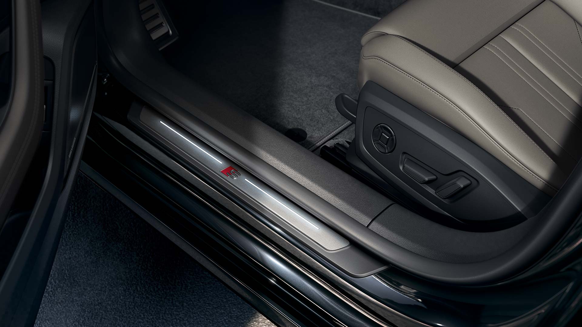 The ambient lighting package creates a unique atmosphere in the vehicle which can be customised to perfectly suit your style. The optical fibres allow precise lighting to accentuate contours, emphasise the dashboard and design structure, and enable comfortable entry and exit in the dark. There are six predefined colour profiles available, or you can create your own custom profile from a choice of 30 additional colours.