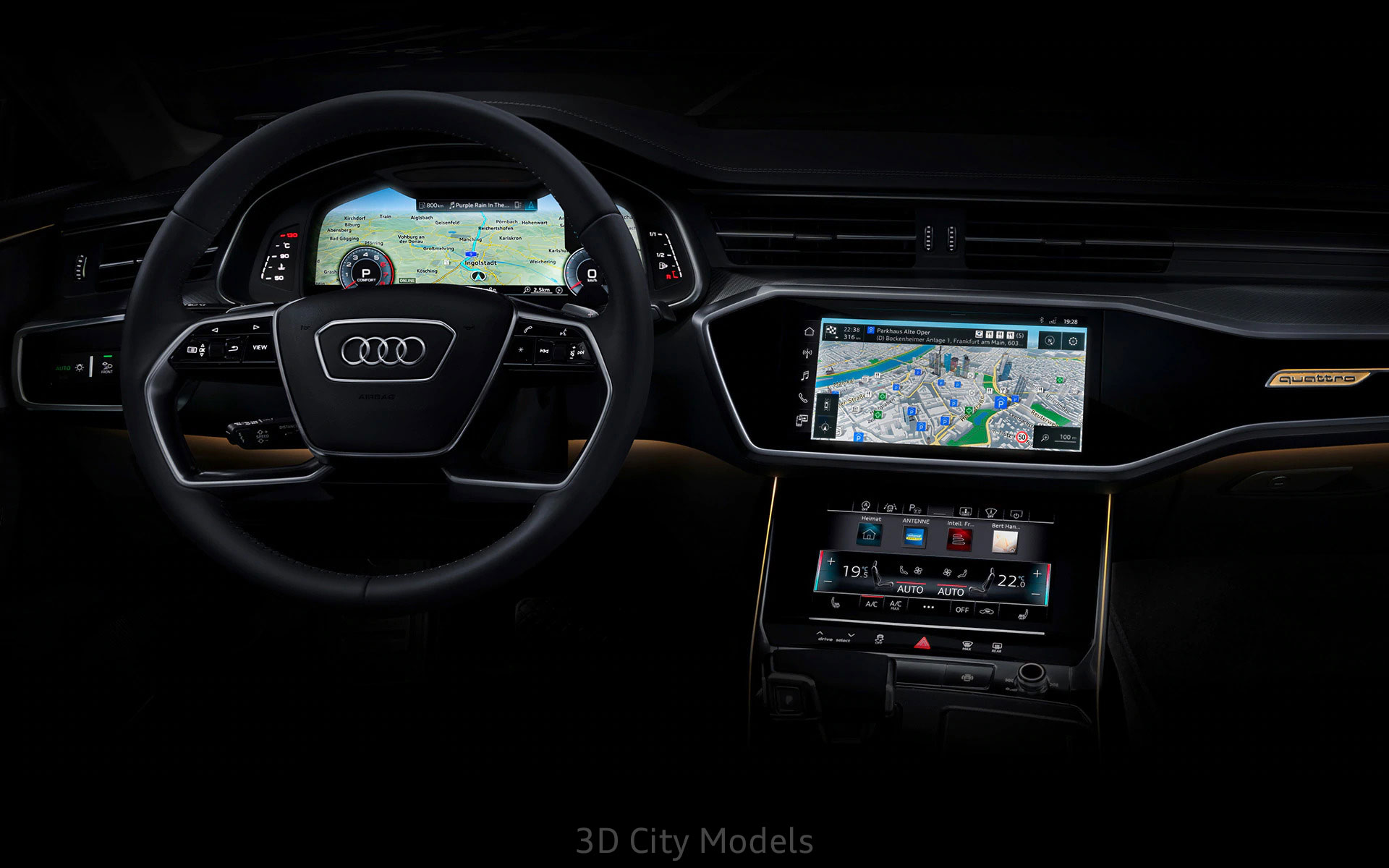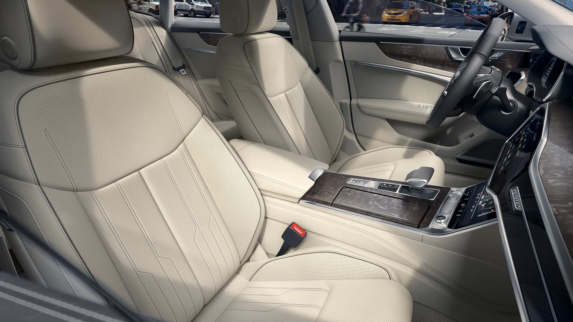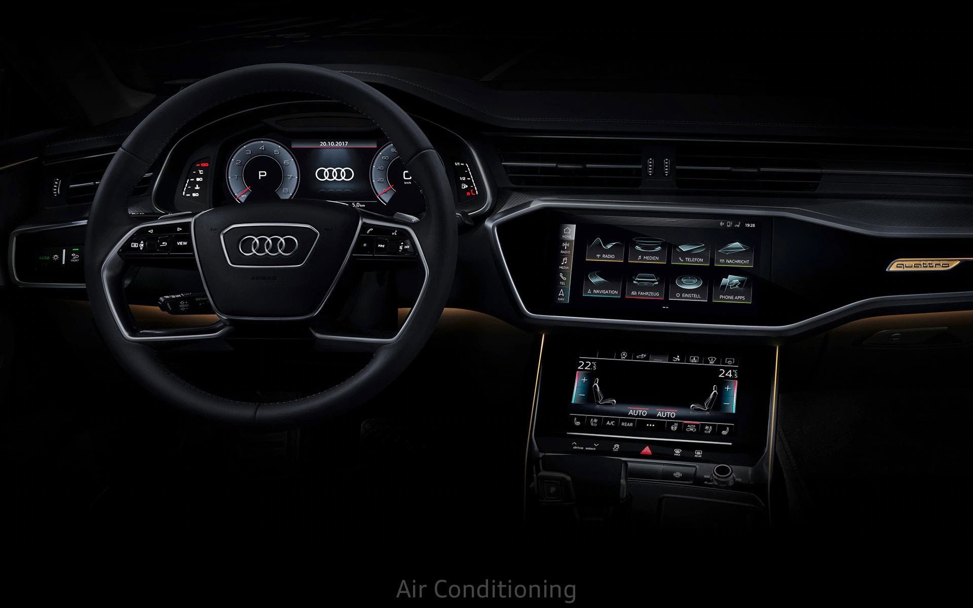 A revolutionary operating concept awaits you in the A7 Sportback. The high-resolution 10.1-inch and 8.6-inch HD touchscreens are incorporated into the dashboard seamlessly with an impressive level of detail to make every journey comfortable. The upper display provides access to the infotainment systems and the lower display provides access to air conditioning, comfort functions and text input.