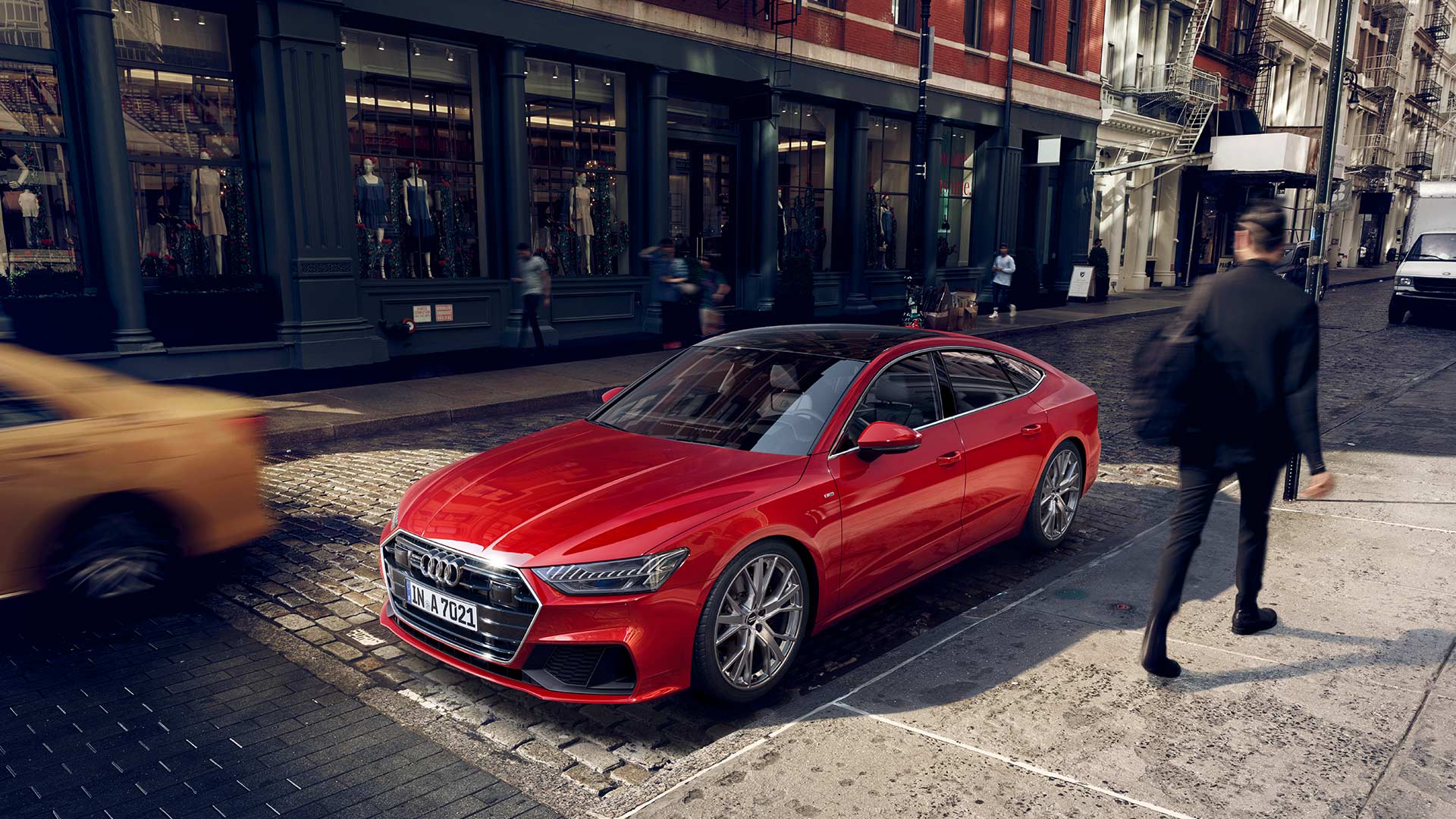 A true design masterpiece, the Audi A7 Sportback melds classic automotive elegance with its own distinctive contemporary edge. Captivating from any angle, the A7 Sportback draws you in from the first glance with its sweeping, coupe-like roofline, the interplay between taut surfaces and the flowing, sculpted line.