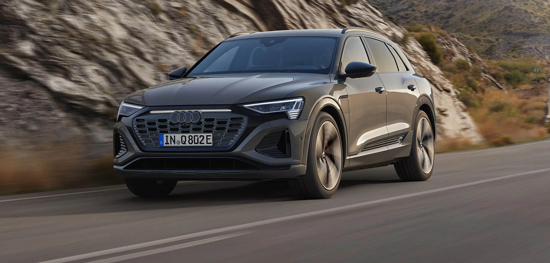 The new Audi Q8 e-tron is characterized by its driving dynamics. The various driving modes of the standard adaptive air suspension, e.g. efficiency or sport, can be set easily via Audi drive select. The steering and cornering behavior is also improved thanks to upgraded lateral dynamics properties.