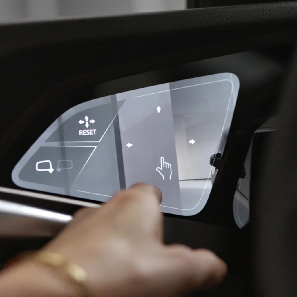 The small cameras of the virtual exterior mirrors on the Q8 e-tron 55 project the images inside onto 7-inch OLED displays. You can see approaching vehicles pin-sharp despite headlight reflections. In addition, they ensure an improved drag coefficient.