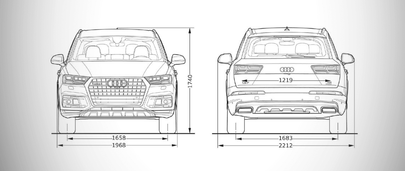 The design of the Audi Q7 is characterised by streamlined surfaces and sharp lines. It is more compact than its predecessor. Its width and height have increased, giving it an even more masculine look and more presence. The distinctive radiator grille and the Audi all-weathered LED headlights emphasise its timeless, athletic appearance.